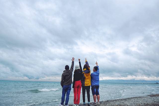 没有好天气的青海湖,实在看不出它有多美。对于海边城市出生的我来说,目前最震撼我的还是西藏羊卓雍措,它像碧绿的宝石,在雄伟壮阔的雪上怀抱下孕育而生。而青海湖,一个个骑行者因它而来,环湖几日更像是一场修炼,当然,因为海拔没有藏区圣湖那么高,它也吸引了众多想要和它合影的人们,拍婚纱照或个人写真,等等。