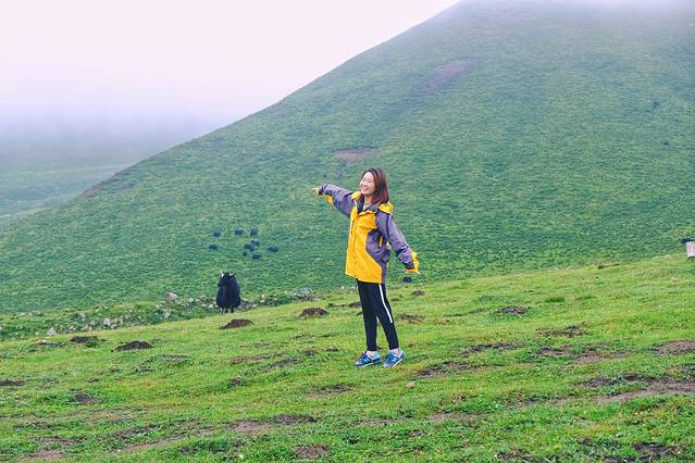 拉脊山成群的牦牛,草地上都是它们的粑粑。空气中漂泊着稀薄的雨,本是8月夏季的青海在有海拔的山里也是冷得不行。远处尽是雾气,白茫茫一片望不到远方,待了有一会儿我们便回车上取暖。