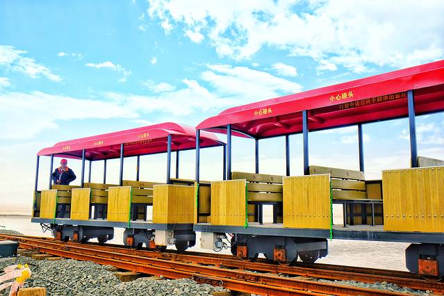 许多人清晨就赶来茶卡,开往景区的路上挤满了车辆,停车场早已拥堵。抵达景区门口,购买门票的多个窗口排了长长的队伍,分为自助售票区和人工售票区,2个区的队伍更替非常缓慢,天气时而飘雨时而放晴,过了1个多小时我们才买到门票。本以为终于可以看到心念已久的“天空之境”,没曾想乘坐小火车还需要继续排长队伍,还遇上旅游团插队这么恶劣的事,景区保安也放纵他们,也不知道收了多少好处。抵达盐湖里面也可以步行,至少走上半个小时。