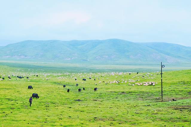 离开西宁,前往青海湖的路上完全一副江南风光,东侧良田阡陌,西侧草原辽阔,牛羊成群,两侧风光反转,非常神奇。