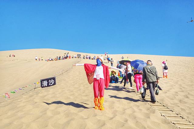 我们是午后去的鸣沙山,游客少一点,其他时间段,尤其是日出日落的观看时间,那是人山人海,进出景区也会很堵车。