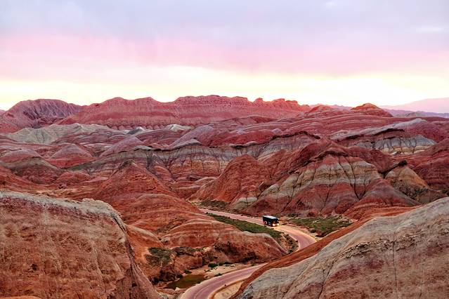 抵达丹霞地质公园已是下午4点,在园区外的宾馆入住后我们才前往景区。晚上6点后就不让进园区了,所以这几张日落后照片,是在我们住的宾馆前拍的。其实从这里也有进入景区内的道路,只是管理员会拦住不放行。毕竟整个丹霞地质公园面积约200余平方公里,置身其中仿佛走迷宫,即使是从景区正门进入,也必须搭乘接驳车抵达各个观景台,禁止步行。