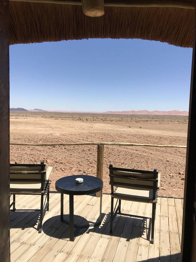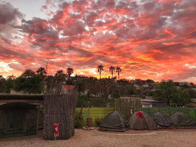 约下午3点前后到达的目的地,NWR旗下红沙漠入口处的酒店,今天晚上的帐篷。这边公园的费用是先付的,价格和埃托沙也是一样的,我们两个人一辆车费用是170纳币。