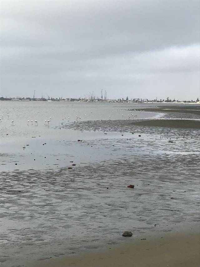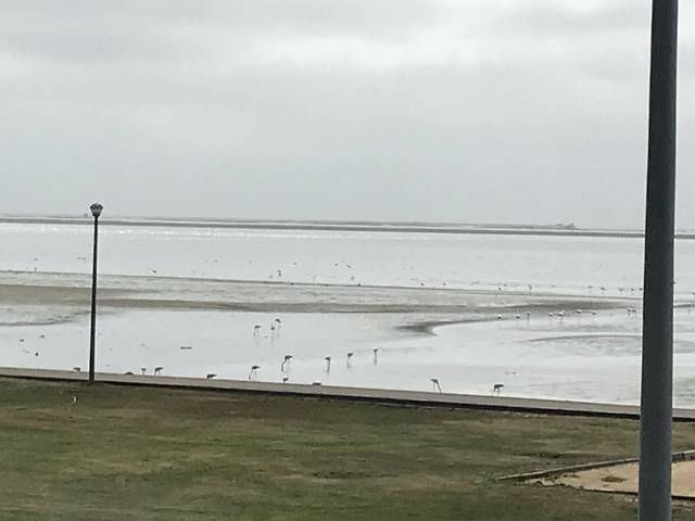 下午休息后出门乱晃,开进了一个很难开的地方,有一段路两边都挨着海,海里都是火烈鸟,看见人拍照就给个背影往水深处走的那种。