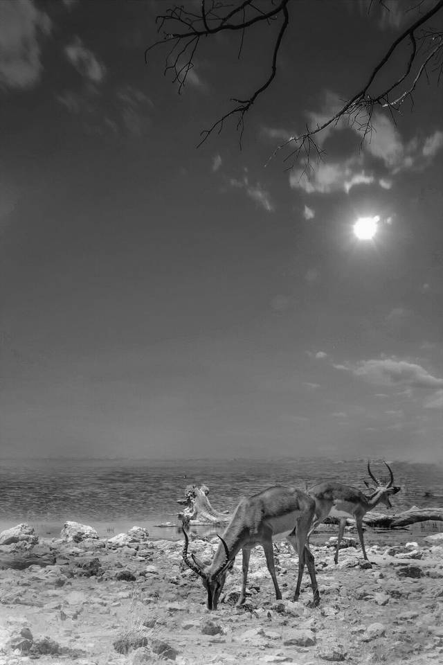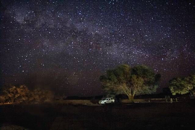 傍晚惯例出去溜,各种岔路乱开一通(红沙漠岔路不多,很多都禁止通行的)。太阳快落山便回酒店晚餐了,有露天的位置,略远的外面有个小水塘,有动物陆陆续续过来喝水。天黑后刚刚好是高高悬挂的银河,对着银河晚餐的感觉很赞。
