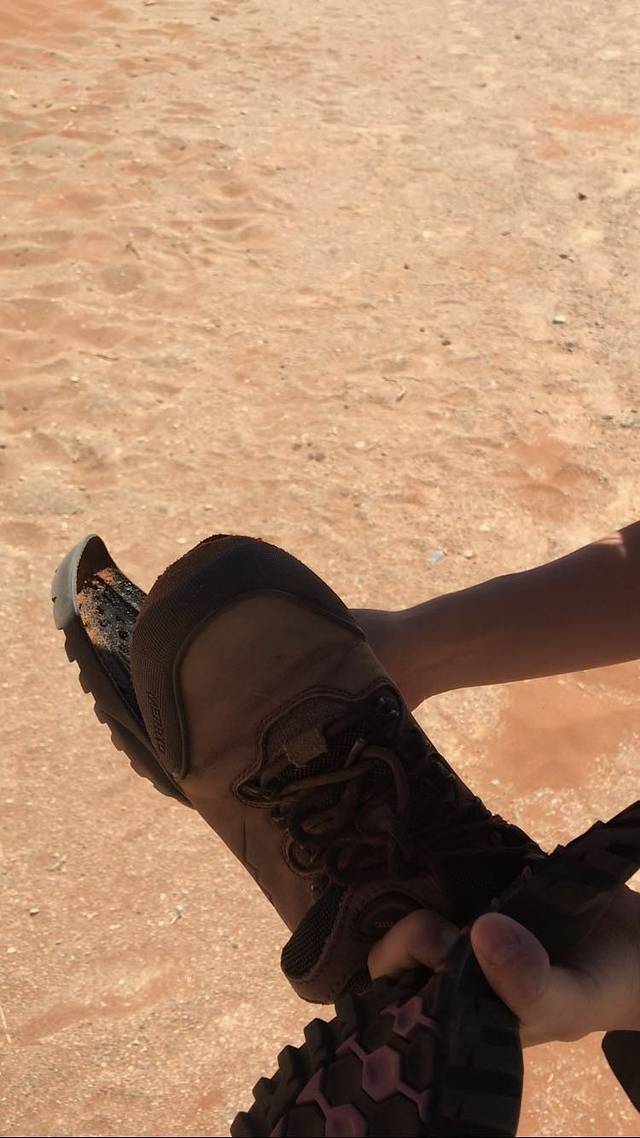 下去的时候用跑的,发现跑着跑着一只鞋鞋底掉了一层,因为中午的沙地温度太高了,跟了我三年的登山鞋胶化了。就这一双鞋,果断扯掉另一只的那层鞋底坚强的穿着回来的。