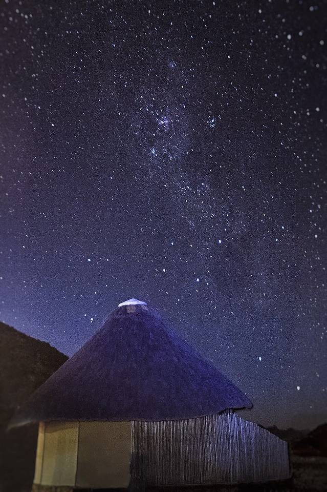 晚上在茅草屋的躺椅上,关掉房间所有的灯,拉开帘子,满眼都是明亮的星星,慢慢落下的银河,很美很美,不过只有一个方向,没有搭帐篷的时候帐篷外360度无死角。