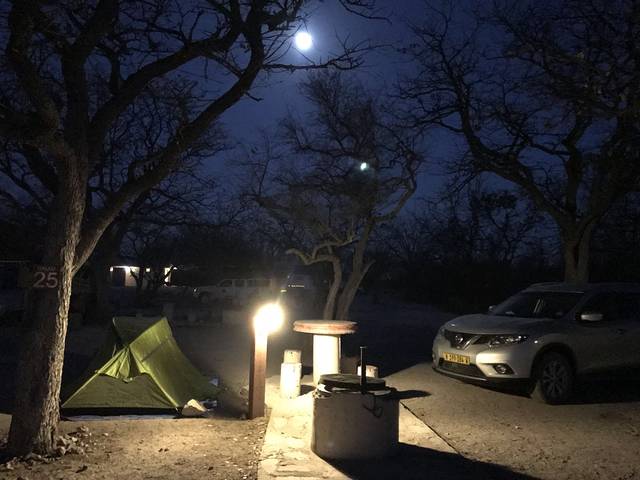 这边营地感觉比halali更加好一些,有一圈石头围着一颗大树,有的有水龙头有的没有。不过无论那边的营地感觉白叔叔们都喜欢车顶帐篷+烧烤+折叠桌椅+各种户外用具,相当齐全。早上拿出桌椅铺上桌布,桌上牛奶燕麦果汁面包相当齐全,晚上用营地的烧烤设备烧烤,自带木材(看到店里有卖)。
