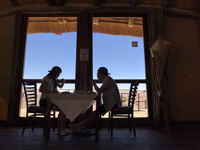 买票的时候太阳已经出来了,不知道是这边海拔高还是有沙丘挡着的原因,太阳一出来就很耀眼,没有埃托沙那边红彤彤的样子。
