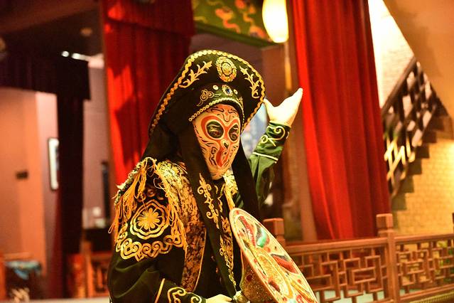 近距离观看变脸,会下来走一圈,让人能够近距离感受变脸的精彩。