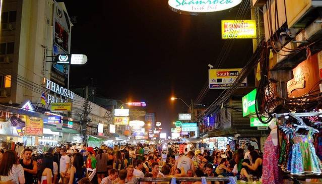 考山路散发的魅力和曼谷其他街道不一样——一条不到400米的街如此生气勃勃,左右两条街道是主要脉搏,摆卖随性的旅游纪念品。这里不仅有数十家旅舍,还有廉价旅社、餐馆、网络服务站、药房、照片冲洗店、提款机等,可谓麻雀虽小,五脏齐全。