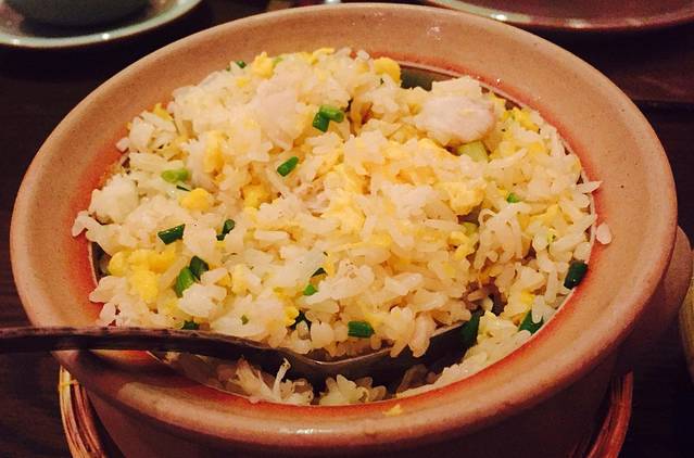 乍一看确实是,蛋炒饭。其实,它是蟹肉炒饭,可能,给我们炒饭的厨师叫蟹肉吧。