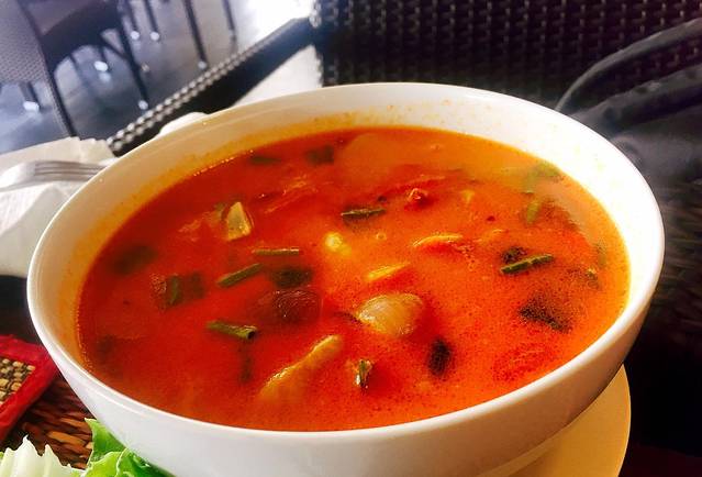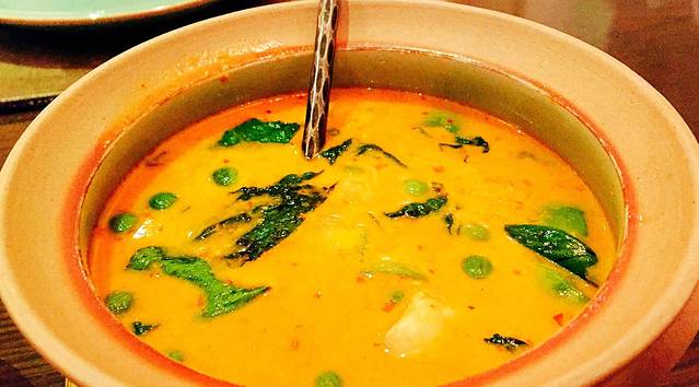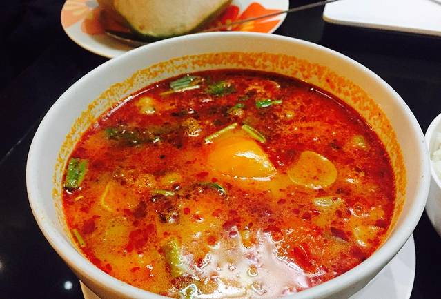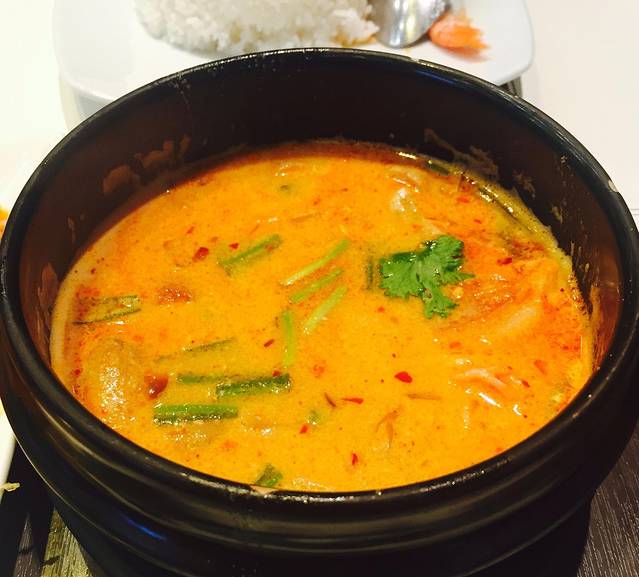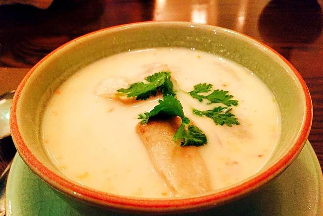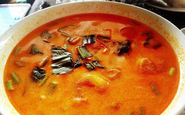 这个是椰奶海鲜汤,看起来浓浓的,其实味道跟冬阴功一样哎,酸酸辣辣的,很好喝!