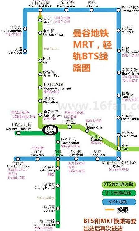 * 曼谷地铁:很重要,大部分的交通都是选择轻轨线路BTS或者地铁线路MRT。