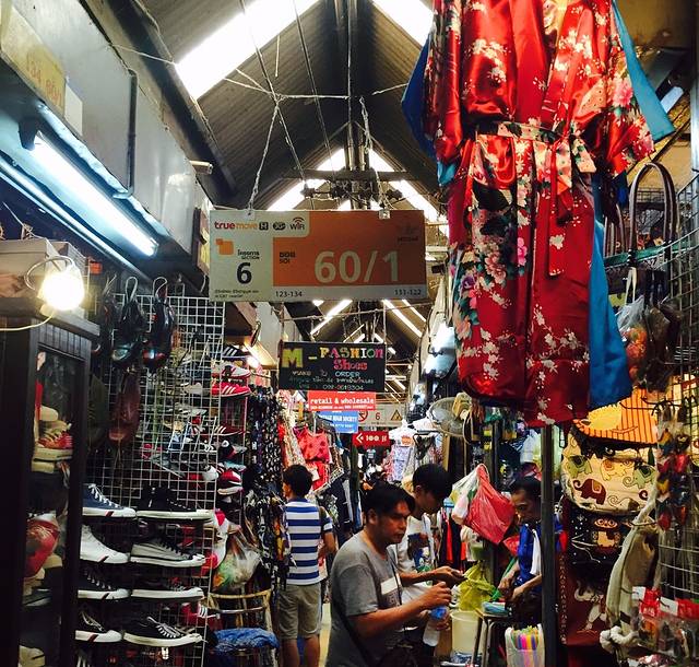 随着人流出站 抬头看路标 当然会出现很多跟你一样迷茫的人 很多泰文不用在意 认准Chatuchak market就可以了 下来以后是大马路 一墙之隔就是公园了 建议可以先去公园逛上一圈 里面有很多当地人撑着小帐篷 然后继续顺着路走 大约还要走五分钟才能真正看到市场的一些痕迹 市场门口很多卖吃的 水果之类的 建议买上一些 一边逛一边吃 市场其实很乱很杂 看好自己的包包 人过于拥挤的地方不要去 大件不建议购买 一些送人的小物件倒是可以淘一淘 。