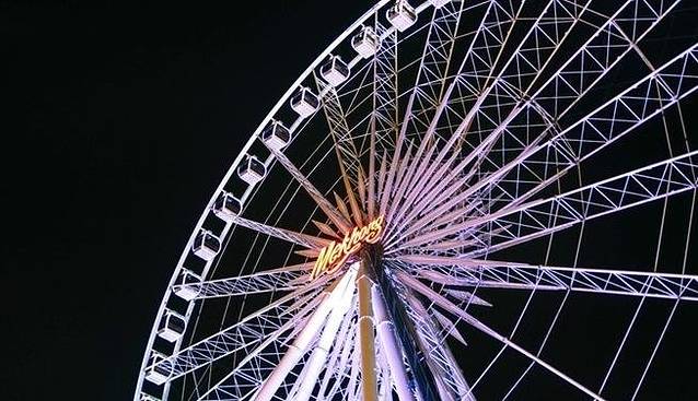 搭船大约15分钟左右就可以抵达。很远的地方,就可以看到ASIATIQUE的地标--摩天轮。仓库中间的过道,灯光很是漂亮的。
