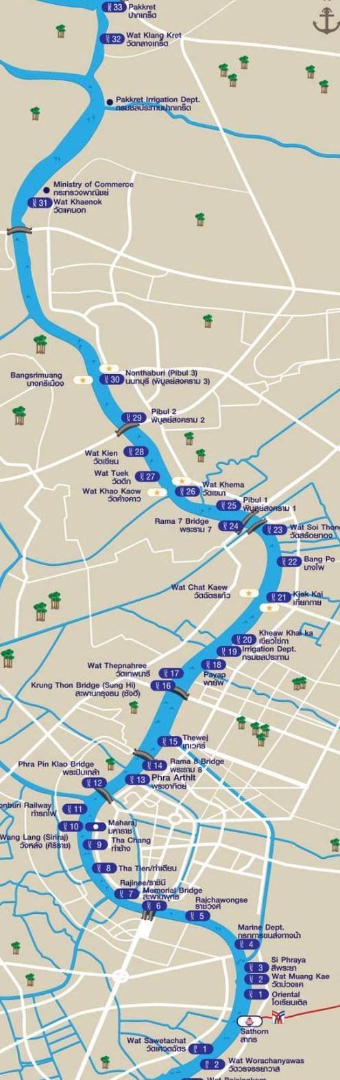 交通:BTS Saphan Taksin站转乘坐公交船至Tha Chang N9码头,到大皇宫至少需要20分钟的时间,所以你可以尽情观赏河岸两边的风景。
