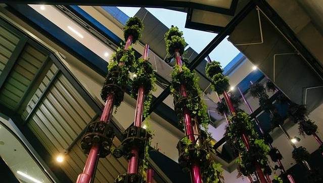 采用的是环保式的开放设计,大部分区域都没有空调,靠自然风吹进,不过到处都种植有不少植物花草。