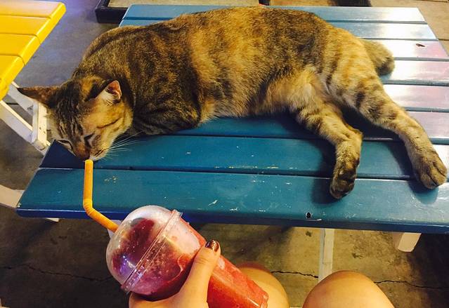 ASIATIQUE规划的很好,吃喝玩乐通通有,环境很干净,一家甜品店的懒猫,趴在桌子上一动不动,摸摸它,默默的白你一眼就又睡了。。。。