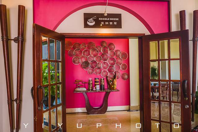 陪胖胖在屋里玩一会,吃了辅食休息休息片刻就已经下午两点多了,来不及出去吃大餐就先到酒店大堂附近的亚洲面馆吃了碗最暖胃的面,还有肉夹馍,酒店的餐厅出品还是值得信赖的,就是价格相对有些贵,不过三亚这边的酒店饮食也没有什么便宜的~~两个人吃得饱饱的~~把胖胖馋的够呛~~别墅到大堂有免费的摆渡车,在房间里致电前台即可。