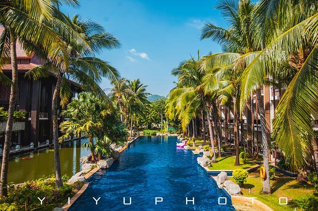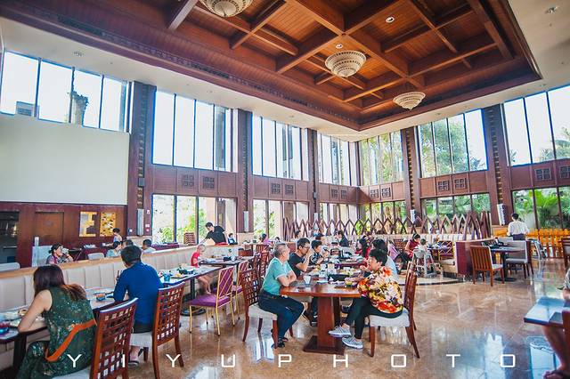 三亚亚龙湾铂尔曼度假酒店(隶属雅高集团),位于亚龙湾,毗邻亚龙湾高尔夫球场。距三亚凤凰国际机场34公里(约30分钟车程)。距三亚市中心30公里。酒店最大的特色就是他拥有三种不同风情的别墅,分别是泰式、缅甸和南洋式。我们入住的缅甸别墅很适合一家三口,主楼有各种公共娱乐设施、儿童活动中心、中央泳池、健身房等,最喜欢的是面朝湖水的餐厅,自助早餐和自助晚餐都在这里。