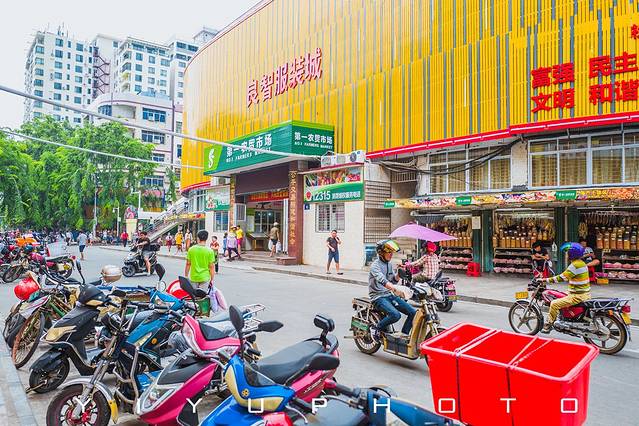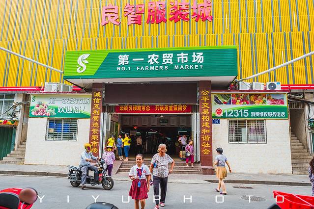 第一市场的具体地址是海南省三亚市吉阳区新建街155号(近新民路),带娃去最佳交通方式是打车!打表就行不怕挨宰,虽然说三亚物价越来越高,但打车费还是比北京便宜的。到了第一市场我有点失落~这也有点太普通了,就这个黄色的小楼,就这么窄的一条路?