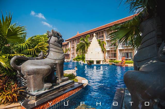 酒店随处可见的热带乔木、美轮美奂的无边室外泳池、私家别墅中惬意的纳凉亭,鹅卵石铺就的一条条小径,以及每一个区域富有特色的雕塑和手工艺品,让你无时不感受到东南亚的风情。