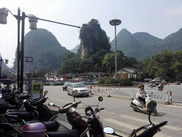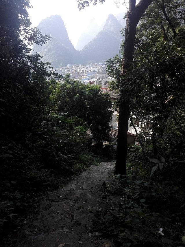 后来听说阳朔有个电视塔...作为一个不开放的“景点”,似乎有着不错的视野。找了本地人问一问,给了五块钱坐上摩托车一路飞驰...