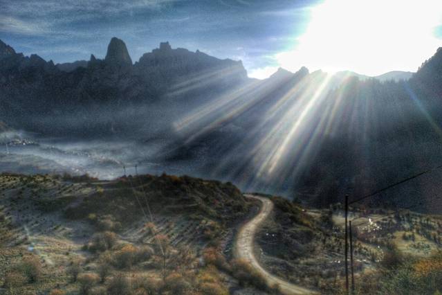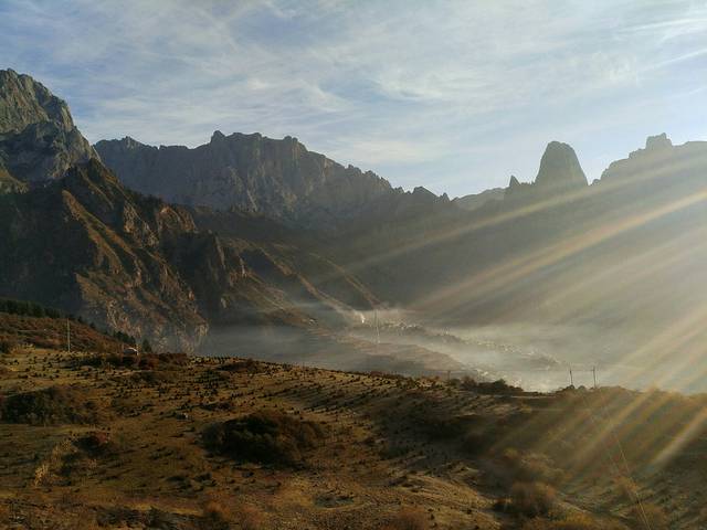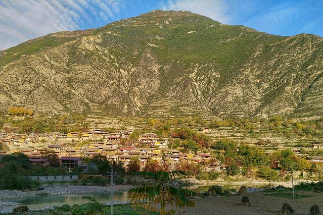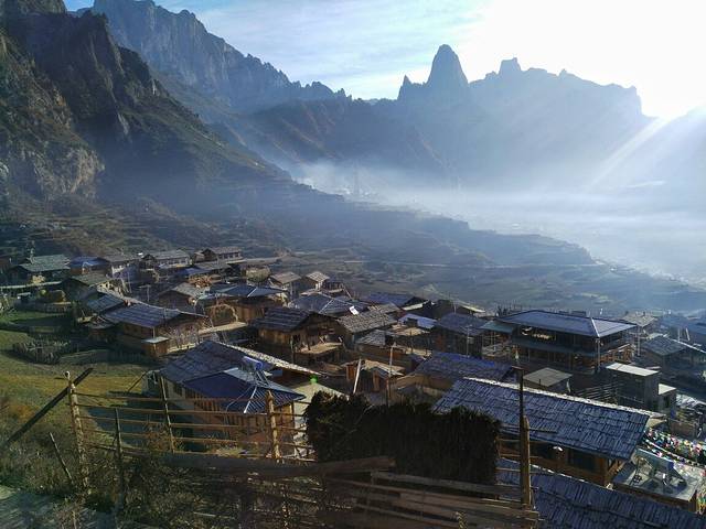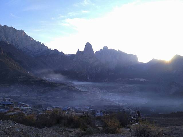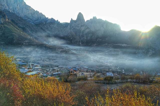 太阳从对面的山头升起来了,万道霞光照耀在这小小的村庄里,周围都是大山的扎尕那顿时暖洋洋的,这里被称为“石头城”是洛克发现这个地方并把它推向全世界,到这里来的人络绎不绝,好多人也来这里徒步,这么热的地方还保持着这种原生态实属不易。