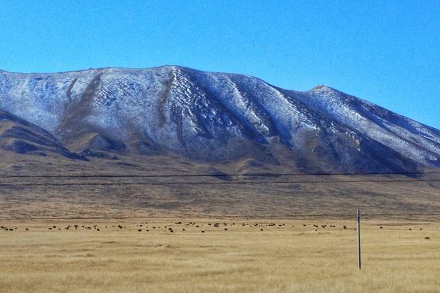 依依不舍的离开了这美丽的地方,向着兰州行进,远望着雪山和一望无际金黄色的大草原,看着头顶的蓝天,心中泛起无尽的思念……。