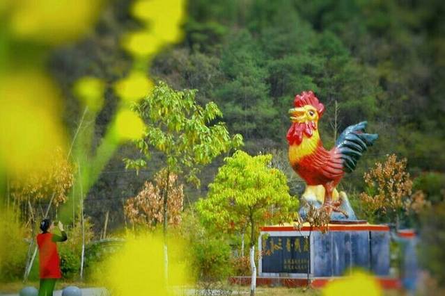 我们从青木川到余家湾上高速要走姚秦路18公里,路还不错挺好走的。沿途有一个水库,还有一处省界点,这里是川、陕、甘的交界处,鸡鸣闻三省,这里站着一个大公鸡。