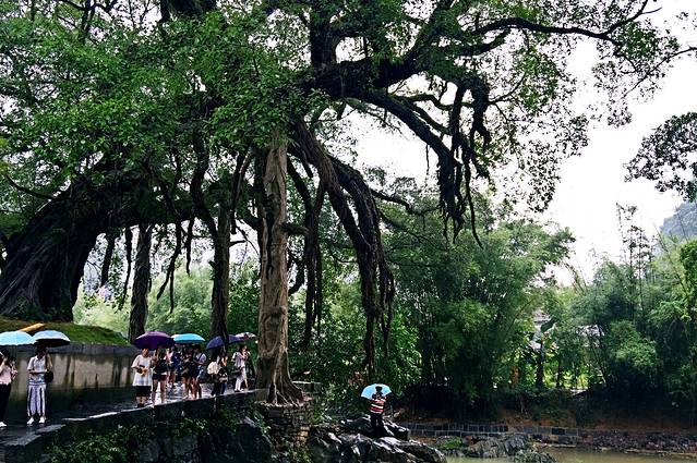 进入古镇就见两棵古榕树,和湍急流过的溪水。看这古树一定有千年之久,树干树皮像老人的手青筋裸露,显示着无尽的沧桑。