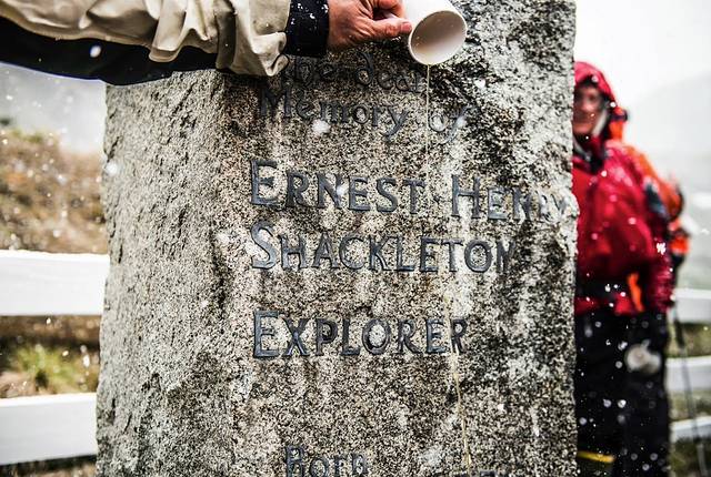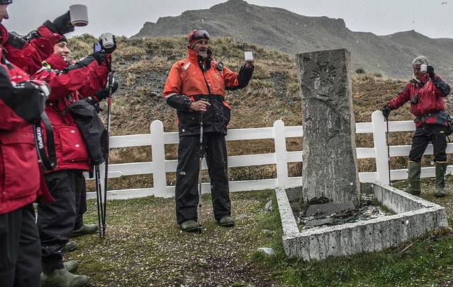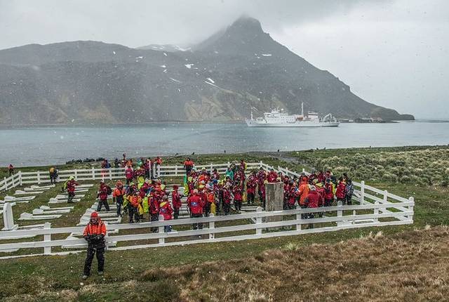 今天居然下起了很大的雪,先坐冲锋舟上岸,首先来到一个墓地,接受西方的国主义教育,当时不知道是怎么回事。香港大叔能听懂,但是毕竟离我们太远了,完全没有没有感觉,倒是那些老外,很庄重。回来百度了一下,知道这是欧内斯特·沙克尔顿的墓地,一个一直在努力去南极点但是一直失败的英雄,死后,他要求把自己葬在这里。其实,什么是成功,什么是失败?自己努力了,坚持了,付出了,其实就是成功了。