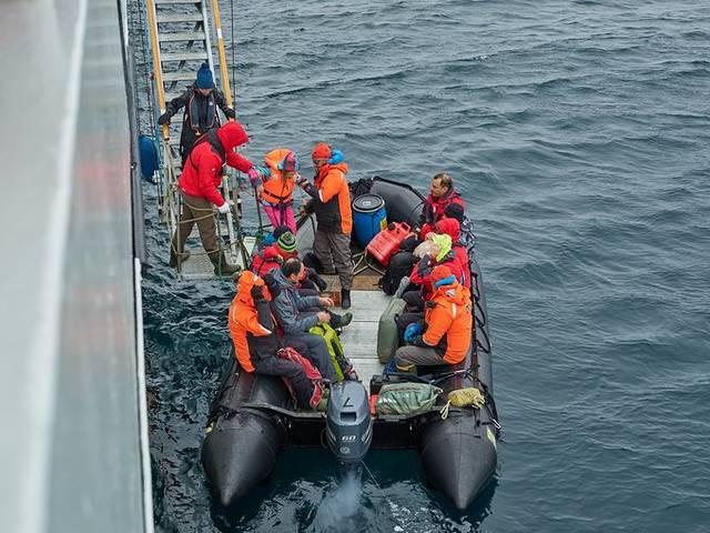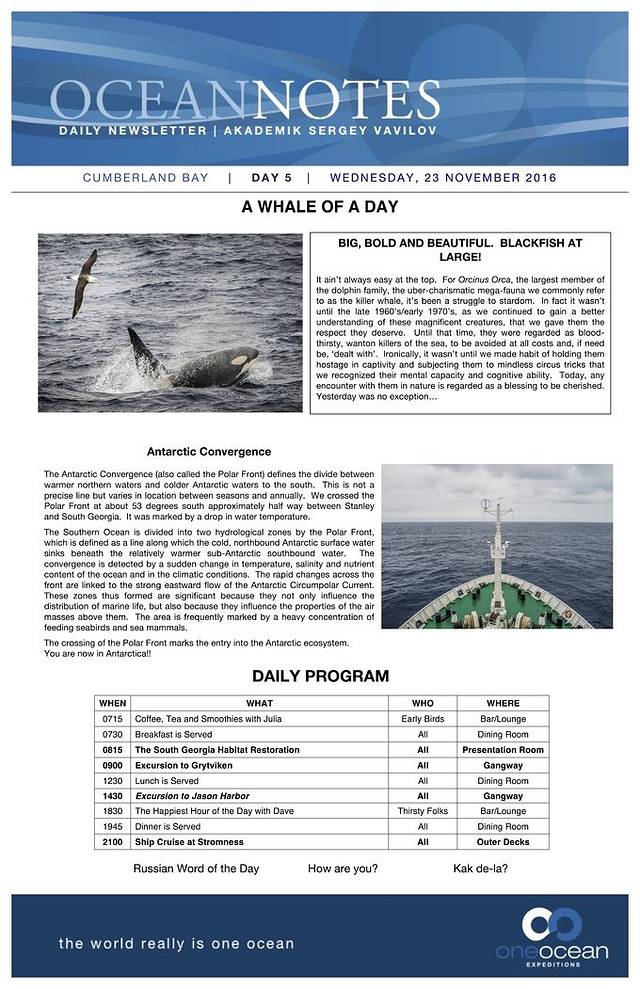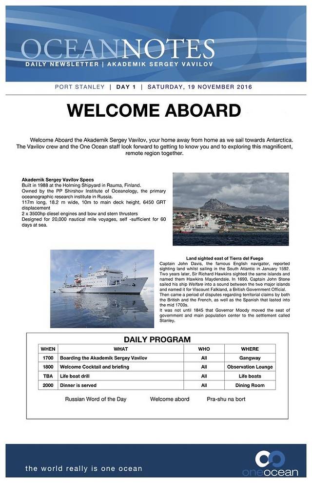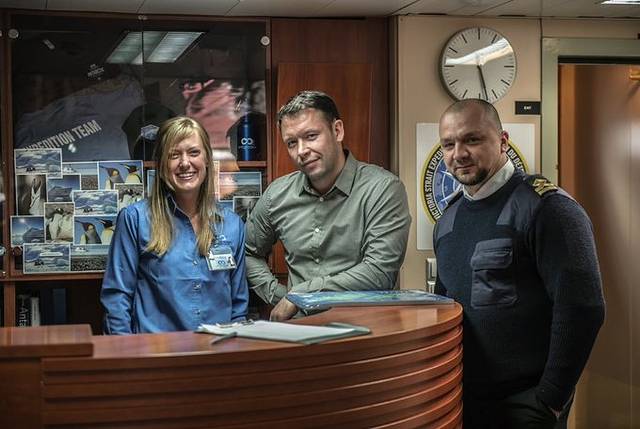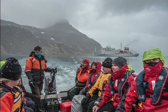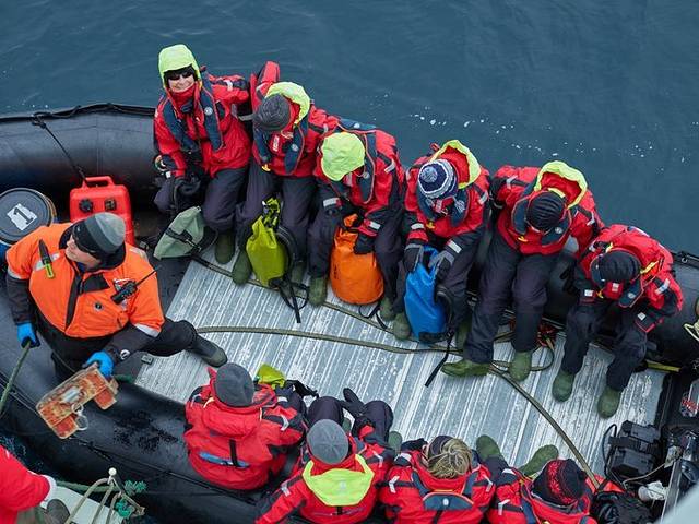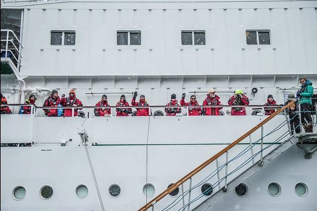 这艘船是one ocean公司从俄罗斯租的科考船,据说一年租用8个月,4个月南极、4个月北极,其它时间俄罗斯收回搞科研。船上的工作人员分为两部分,那些直接对我们负责的是从全世界招来的热爱探险的年轻人,基本上属于帅哥美女。而另外一些是俄罗斯人,除了特别帅的船长和大副,其他人平时很难看见。