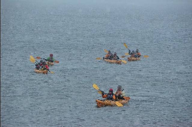 皮划艇有两个队长,一个是来自于英格兰的女孩stephi,stephi瘦瘦小小的,但是你能感觉到她心里有着巨大的能量,自由自在、无所畏惧,一个在苏格兰高地在山与海之间长大的女孩子。一个是jimy,很活泼,爱搞笑,而且很疯狂,曾经连续73天划皮划艇探索北极。就连stephi都说他是疯狂的。