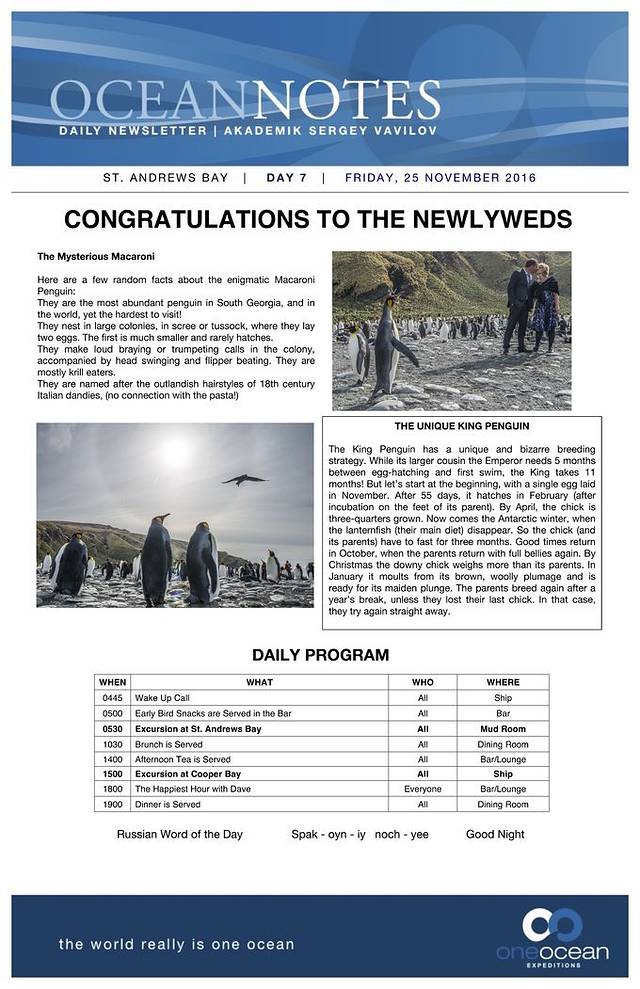 今天,是航海日,但是,却异常繁忙。上午,先去开会,所有的人都必须去,记考勤的,讲的主要是上岛后的注意事项,让人类的活动尽量减少对动物的影响,虽然能听懂的不多,但是猜也能猜得到了,离动物的最近距离是5米,动物可以走近你,但是你不能走近动物,你只能留下脚印带走回忆。