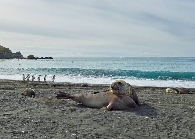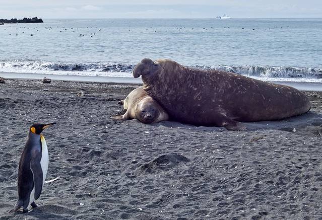 这个岛曾经是是捕鲸的中转站,现在还遗留有很多当年的印记。当然,最吸引人的还是那些可爱的海豹,如此顽皮,如此爱热闹。后来发现,海豹是最顽皮的动物,总是会往有人的地方凑合,撵都撵不走,我还看见,小海豹逗小企鹅玩儿,一只走散的小企鹅要去跟小伙伴回合,那海豹就拦在小企鹅面前,怎么都不让小企鹅过,终于逼得小企鹅放弃了,绕远走过去。动物和动物的和谐,人和动物的和谐,看得人心里暖暖的。