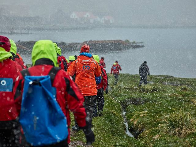 其实现在南极是夏天,游轮公司又给准备了很厚的冲锋衣和冲锋裤。所以,只需要带一件薄羽绒服,一身保暖内衣,两双厚袜子,最好是毛的,帽子、围巾、手套。如果你划皮划艇,我觉得至少需要准备两副手套,反正我的手套天天是湿的,回来第一件事就是用吹风机吹手套。