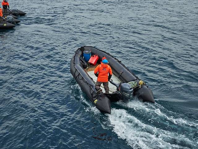 中午,回船上吃饭,下午又上岸了。这次,是先划皮划艇再上岸。我们都上了拉着皮划艇的冲锋舟,在海上爬进皮划艇。通过这一天,虽然是双人的,我一下子感觉良好,觉得自己完全能胜任了,其实呢?……今天,只是在风平浪静的海上初试身手。