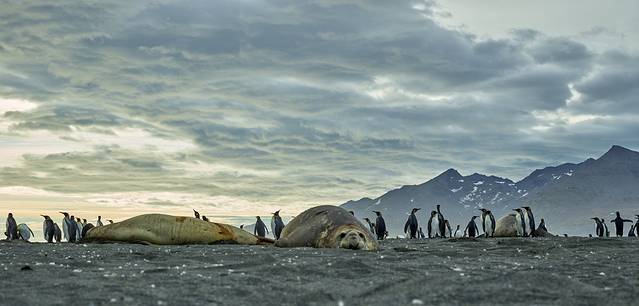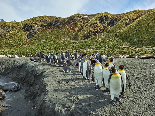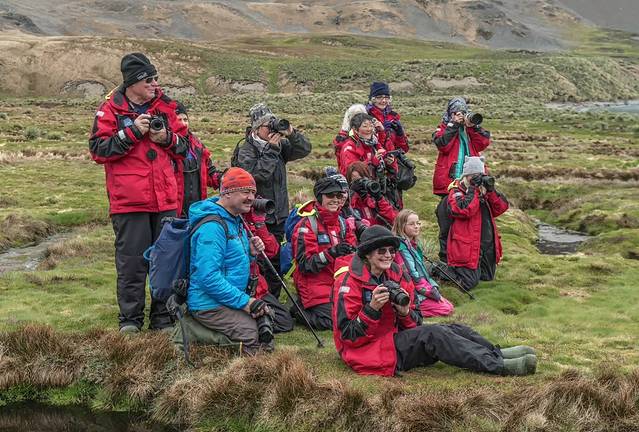 今天上午没有皮划艇,大家都上岸。今天,有着最好的光,虽然我悲催的发现没带长焦,好吧,我把动物当风景拍。南乔治岛的天气变幻莫测,据说基本上都是坏天气,而我们很幸运,遇见的基本上都是好天气。