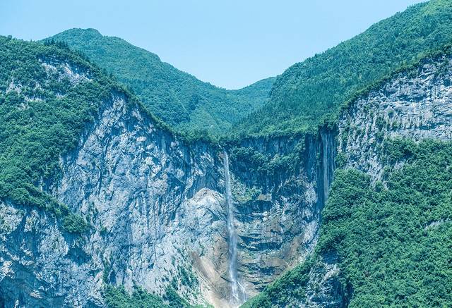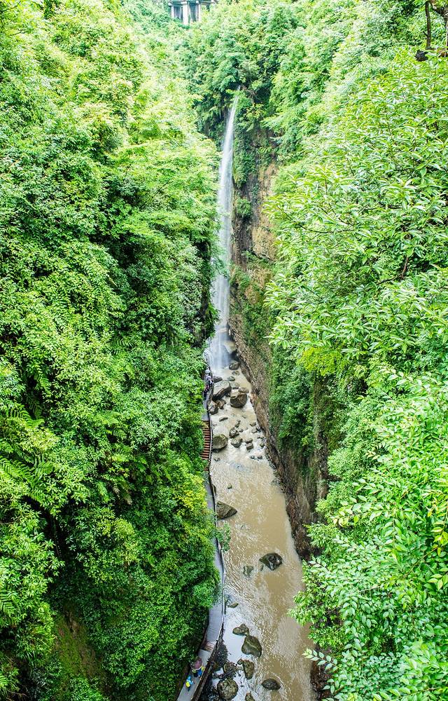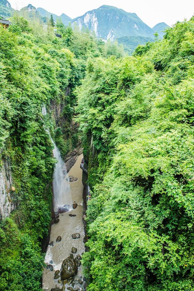 全长3.6千米、平均深75米,平均宽15米,两岸陡峭,飞瀑狂泻、缝底流水潺潺,上通天水暗河,下联莽莽清江。