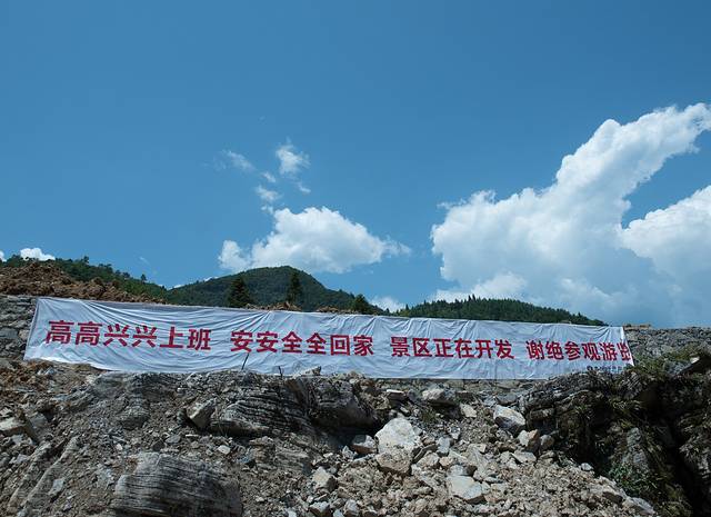 然后来到鹿院坪,路边打麻将的大爷大妈说,哎哟进不去赖进不去赖,在施工赖,已经中午了,要进去要从另一条小道,要走3个小时才能走到村子入口,今天肯定来不及。。。哭晕在鹿院坪施工铭牌前