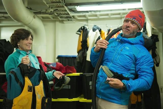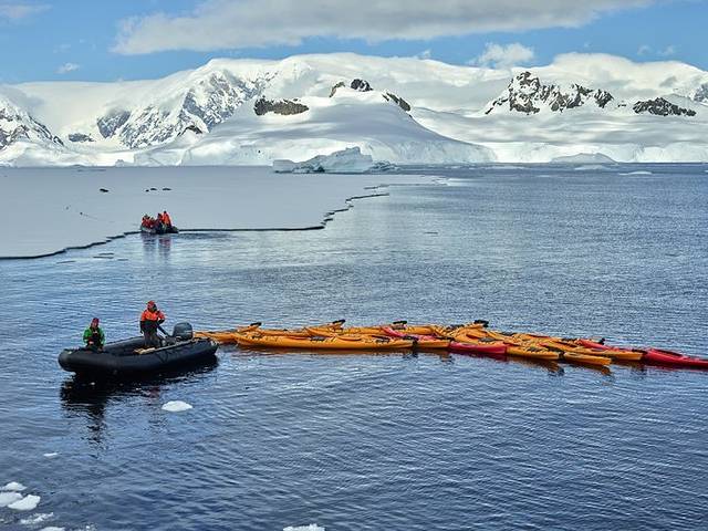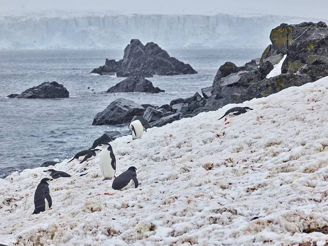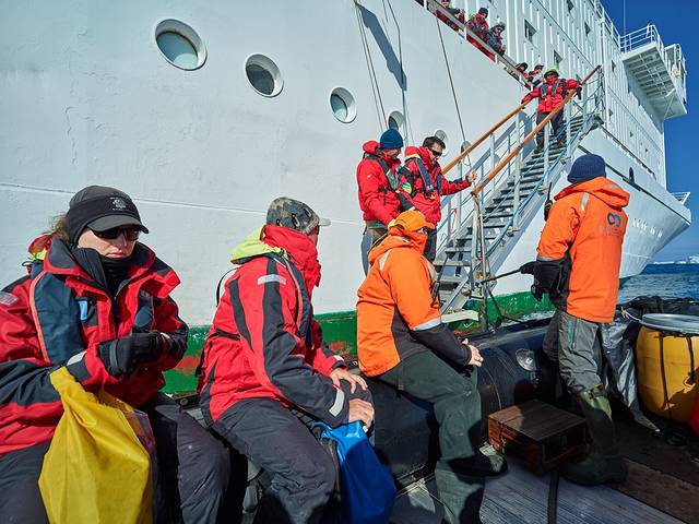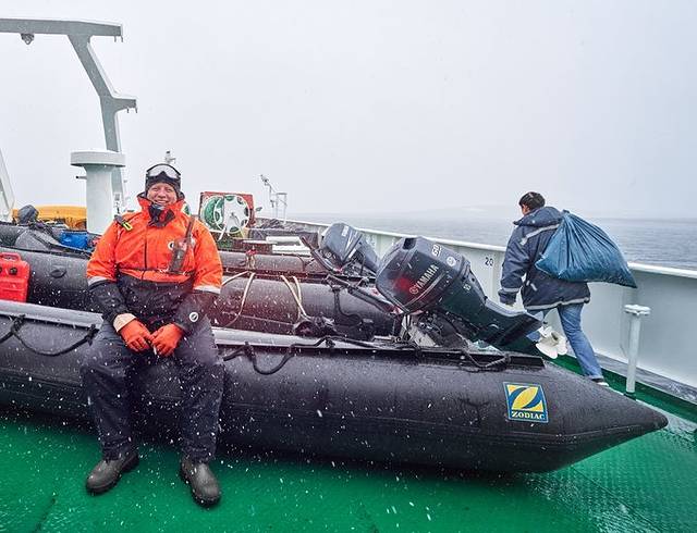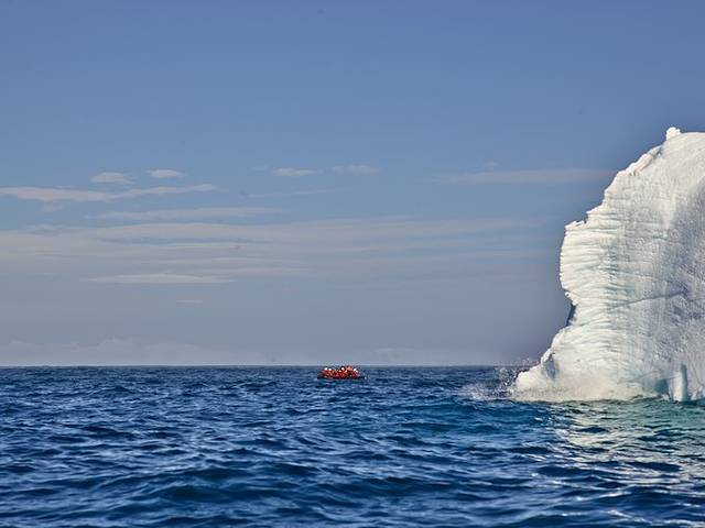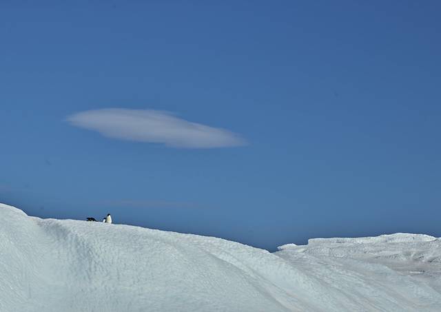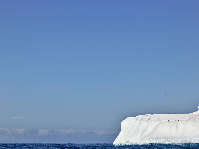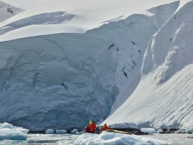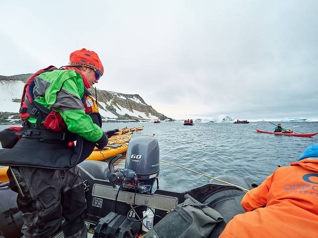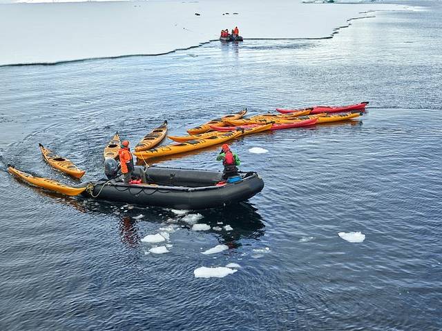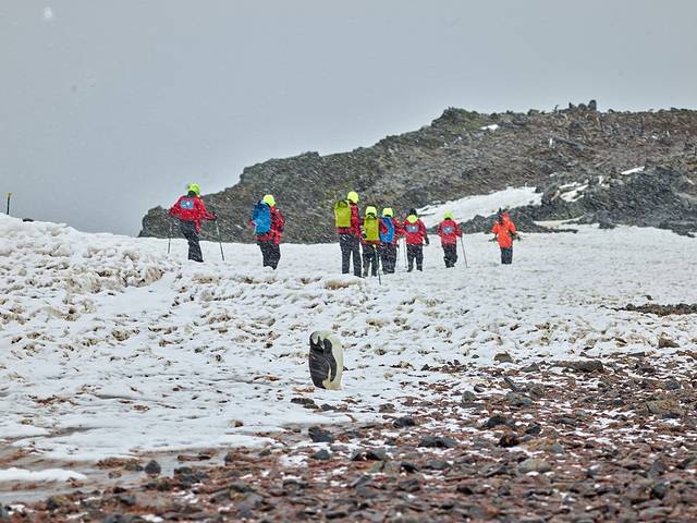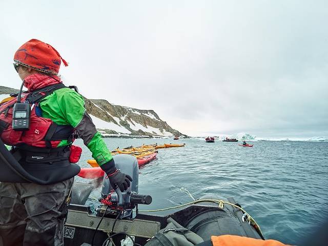 上午又是皮划艇,坐船冲锋艇的时候,stephi的对讲接到塞门的通报,大概是说发现了帝企鹅。所以我们决定先去看帝企鹅,然后再去划船。