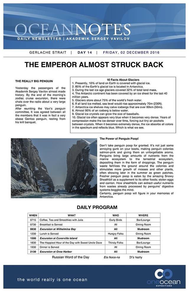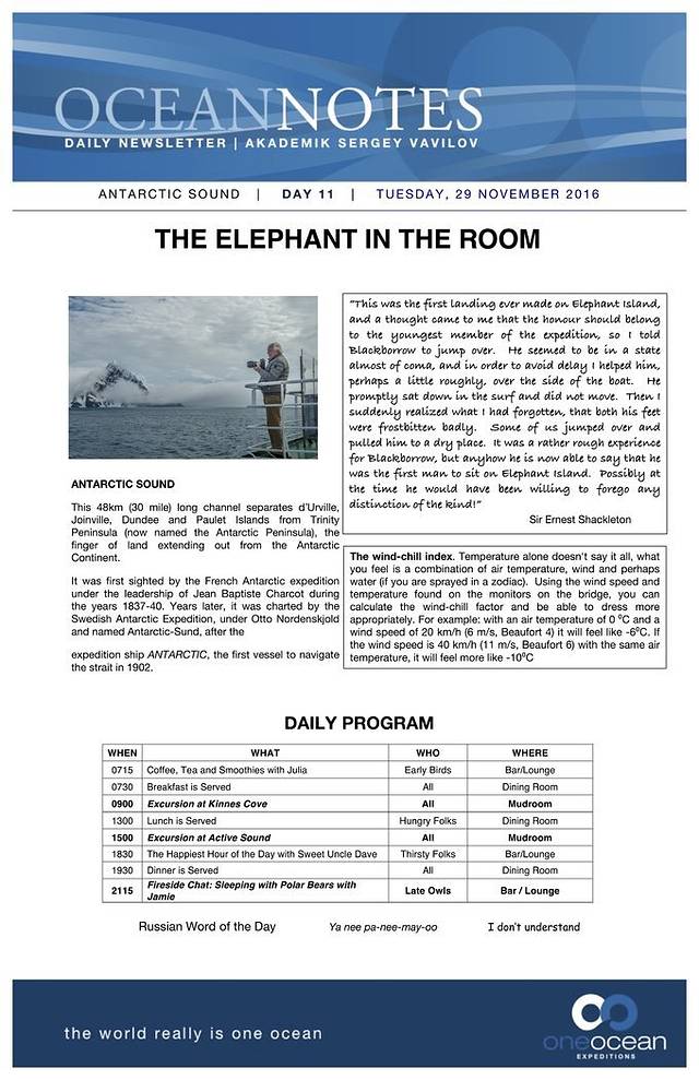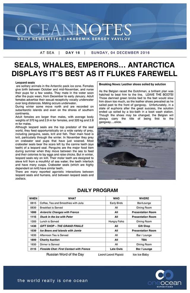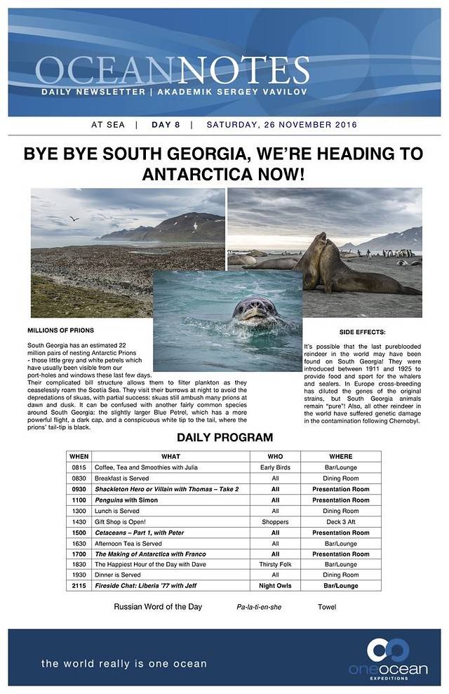 明天就要到真正的南极了,于是今天又是异常忙碌的一天。首先又是开会,船方专门派stephi过来找我,单独给我看有中文字幕的视频,大概意思也是不能打扰野生动物,不能留下任何东西,不能带走任何东西。然后,还给了我一份中文文件,让我看后签字。