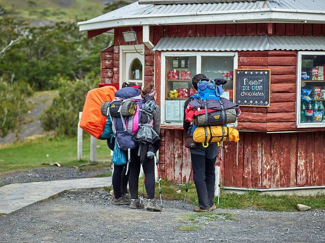 三塔是百内最最著名的景点,据说山上有两个营地,一个在半山腰,是付费的,一个离山顶更近,是免费的,因为都可以爬到山上看日出,所以都紧张。据说半山腰的一个床位都提前一年才能订上,像我这种突然抽风想去的,是完全不可能订到的。我去官网订,床位已经全满了,但是,一天,无意中在网上逛,发现了唯一的一张床位,当时其实已经定了三塔脚下的一个酒店。100美金一晚上,六人间的床位,预定的时候,还核对了名字,才义无反顾地订了,当时觉得自己真是人品大爆发。其实,当时对住多人宿舍还是忐忑的,所以,那间酒店也没退,当时想,先纠结一段,大不了床位不要了,不过就是100美金。