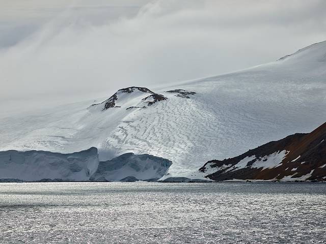 早晨,起来的时候,船就停了,打开窗子,阳光照在雪山上,说不出的壮观和美丽,赶紧拿了相机出去拍照。