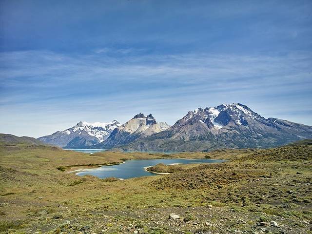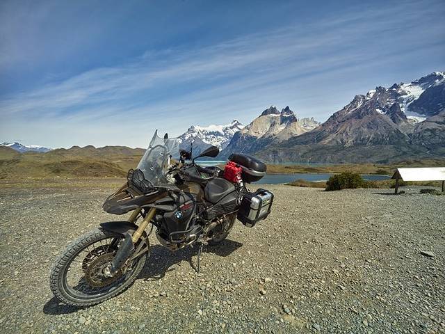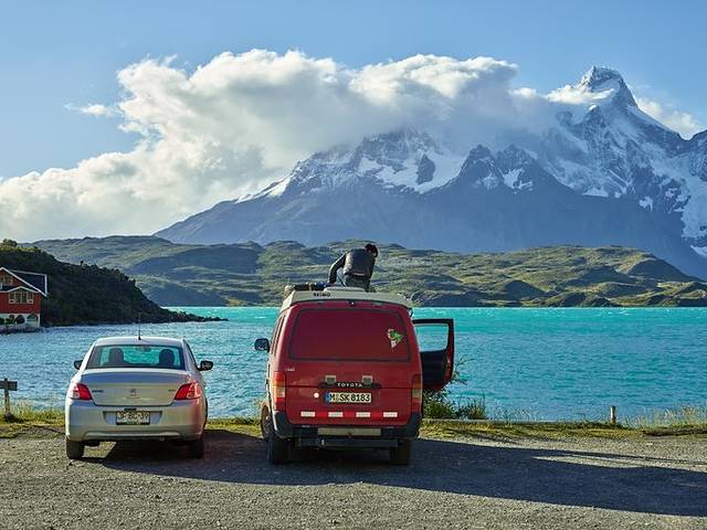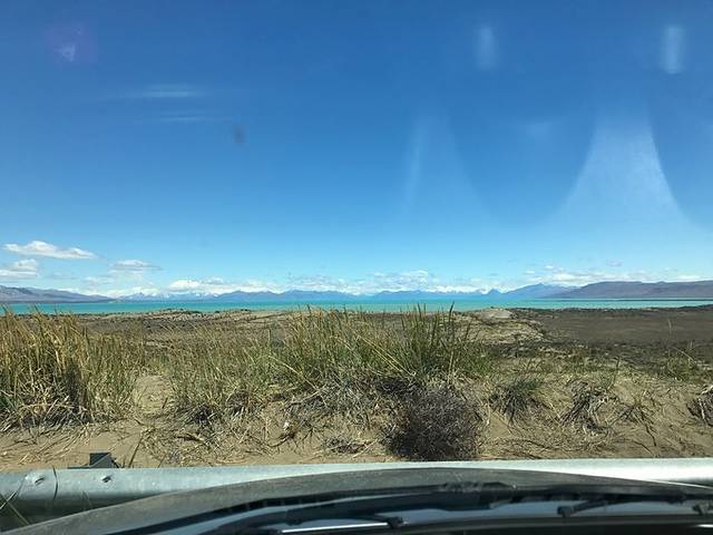 巴塔哥尼亚真的干旱,太干旱了,道路两边都是荒芜低矮的茅草,异常荒凉。路过阿根廷湖的观景台,在巴塔哥尼亚,湖水真的可以用碧蓝碧蓝来形容,很多当地的孩子在那,看见我就过来了,用英语热情地跟我打招呼聊着天。我想把箱子里的车充和支架拿出来,正在翻箱子,一阵大风刮来,车子居然往前溜车,我是拉了手刹的,当时有点发傻,几个孩子就帮我拉着车,居然把车拉住了。后来,就记住了,每次停车,一定要使出把手刹拉断的力量来拉手刹,否则那个车的手刹就是摆设。