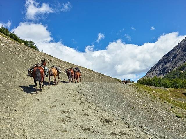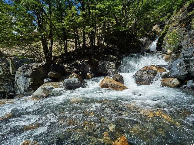 因为要爬山,背相机当然是必须的,剩下所有的东西都可以为相机让步。看大神们的游记说菲茨罗伊山徒步,一路森林、雪山、冰川、山泉,而且山泉是能直接喝的,于是我决定不带水,渴了就喝山泉。结果呢,这一路,差点没渴死。上山的时候,因为是正午,所以就穿了个短袖外面套了件最薄的冲锋衣。小伙伴们注意了,重要的事情说三遍,山上风大,走路的时候汗流浃背,一停下来,自己想吧,反正我连休息都不敢。最最悲催的是,上到第一个观景台的时候,眼前豁然开朗,我支起相机,在一堆人的围观下,按下快门,没反应,又按了一下,还没反应,当时傻了,我没带卡。这样的事情,已经不是第一次发生了。当时稍微纠结了一下,是继续走,还是下去取卡?要知道,这一段虽然只有30分钟,但是这可是实实在在的爬山呀,可是,背着这么沉的相机,没有卡?于是咬了咬牙,又走了下去拿了卡,唉。人二没办法。