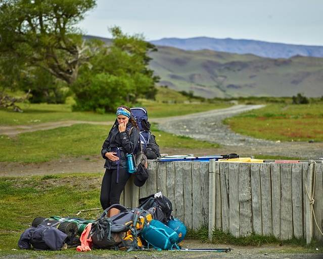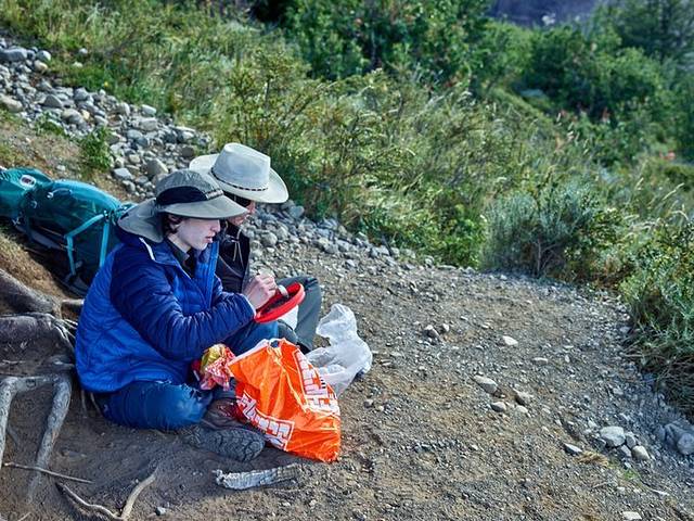 然后,我就把车停在了三塔徒步的入口处,就在要上去的那一瞬间,还是拿出了地图又比对了一下我订的营地,怎么看怎么对不上,当时有点含糊我不确定我要去哪个营地,所以决定再去找人确认一下,就在这个时候我还认为我的床位在山上,只是高点或者更高点的问题。然后我就傻了,被告知这个营地就在我吃饭的酒店边上,不在山上。当时我还有些不信,但是当我花了两分钟找到我的营地的时候,我真的就彻底傻了,我摆了一个最大的乌龙,我订的营地在山脚而不是在半山腰。这应该是我做过的最二的事了吧?还差点就爬上去了,好在问了一下,否则到那之后天黑了,想下都下不来,基本上就是冻死在山上的节奏了,着真的是二到惊天地泣鬼神了。但是,问题出在哪儿呢?这个营地因为在半山腰,只有两个可能,一是我查到的信息有误,另外一种就是我脑子让驴踢了。当时还到处显摆自己运气好,别人提前半年都订不上的地方我提前一个月订上了,唉。其实当时爬不爬山看日出还是很犹豫的,于是一直保留着山脚下的酒店,但是前几天菲茨罗伊山徒步之后对自己信心大长,果断把山脚下酒店退掉。但是,现在我住那六人间干嘛?于是又舔着脸去我退掉的那家酒店问有房吗?当然没有。于是果断决定在营地混到半夜,1点去爬山,必须把日出看了,必须哪儿摔倒哪儿爬起来,必须有志气。那么现在才四点,干什么呢?上山肯定不行,往返最快8个小时,天黑之前肯定下不来,返回湖边拍照,几十公里的路,又是阴天,也没什么好拍的。于是百无聊赖地把车堵住了山脚下,坐在车里一边喝酒一边拍那些从山上徒步下来的人的狼狈样,整个百内估计再也找不到比我更无聊的了吧?后来才知道这些背着大包小包的不是徒步四天的而是十几天的,厉害呀。看见小情侣从山上下来,拥吻着分道扬镳,这应该是在山上的艳遇吧,如果这样,我也想去。