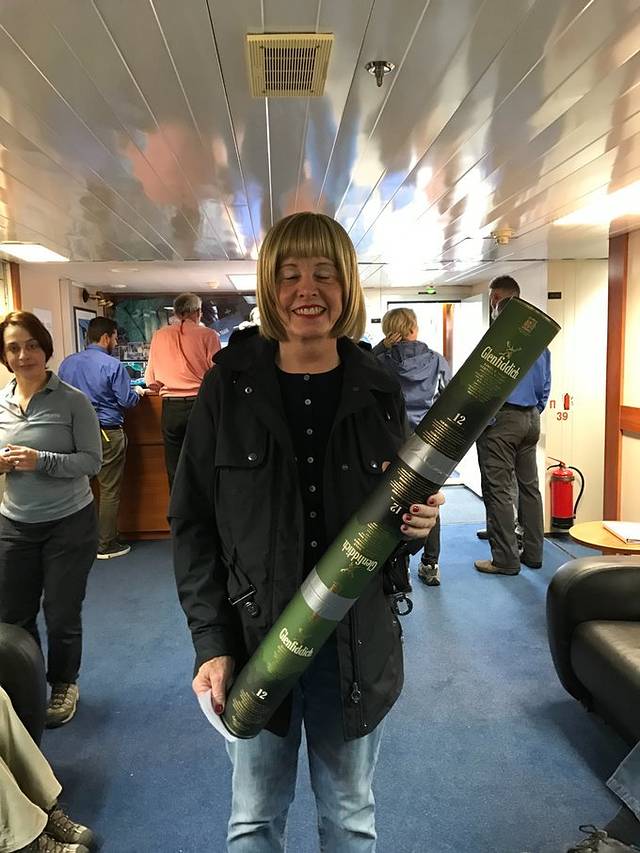 下午,在酒吧有一个关于环保的小型拍卖会,都是一些零零碎碎的小东西,Tshirt,帽子,小孩子画的画,杯子,酒,还有一张船长的签名的南极航海图。